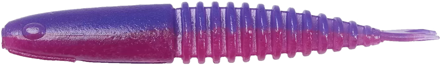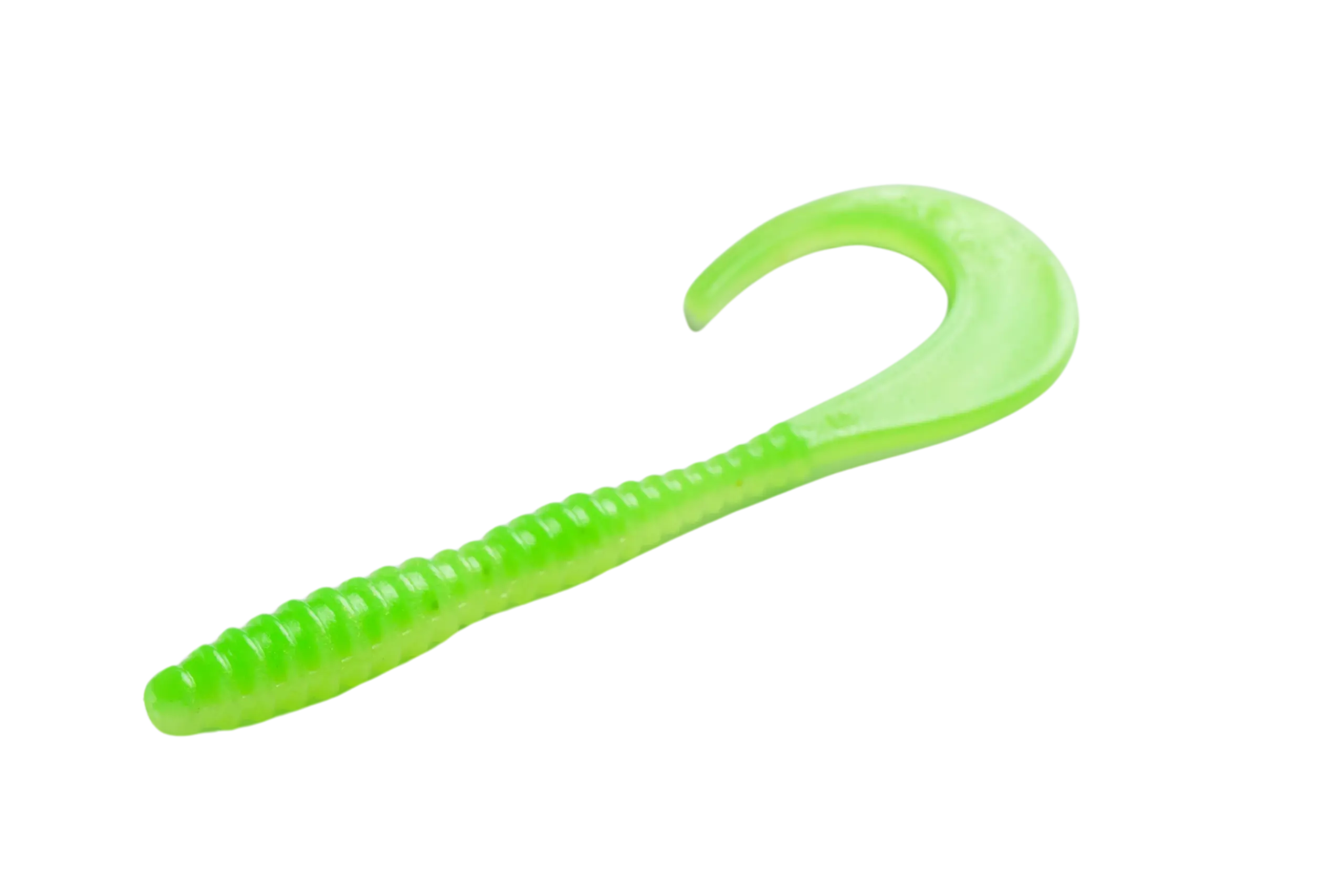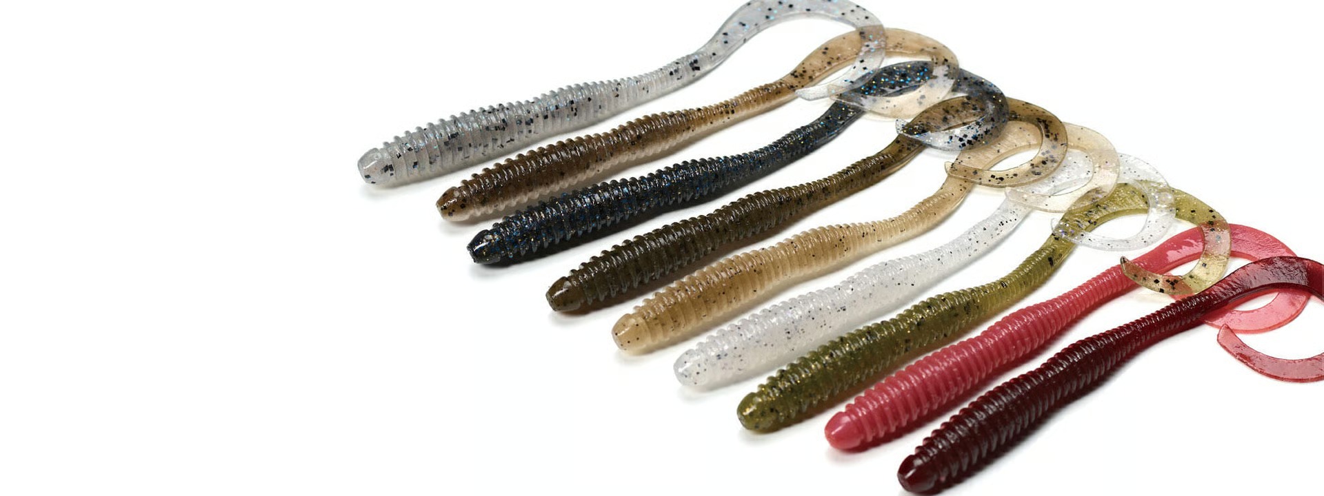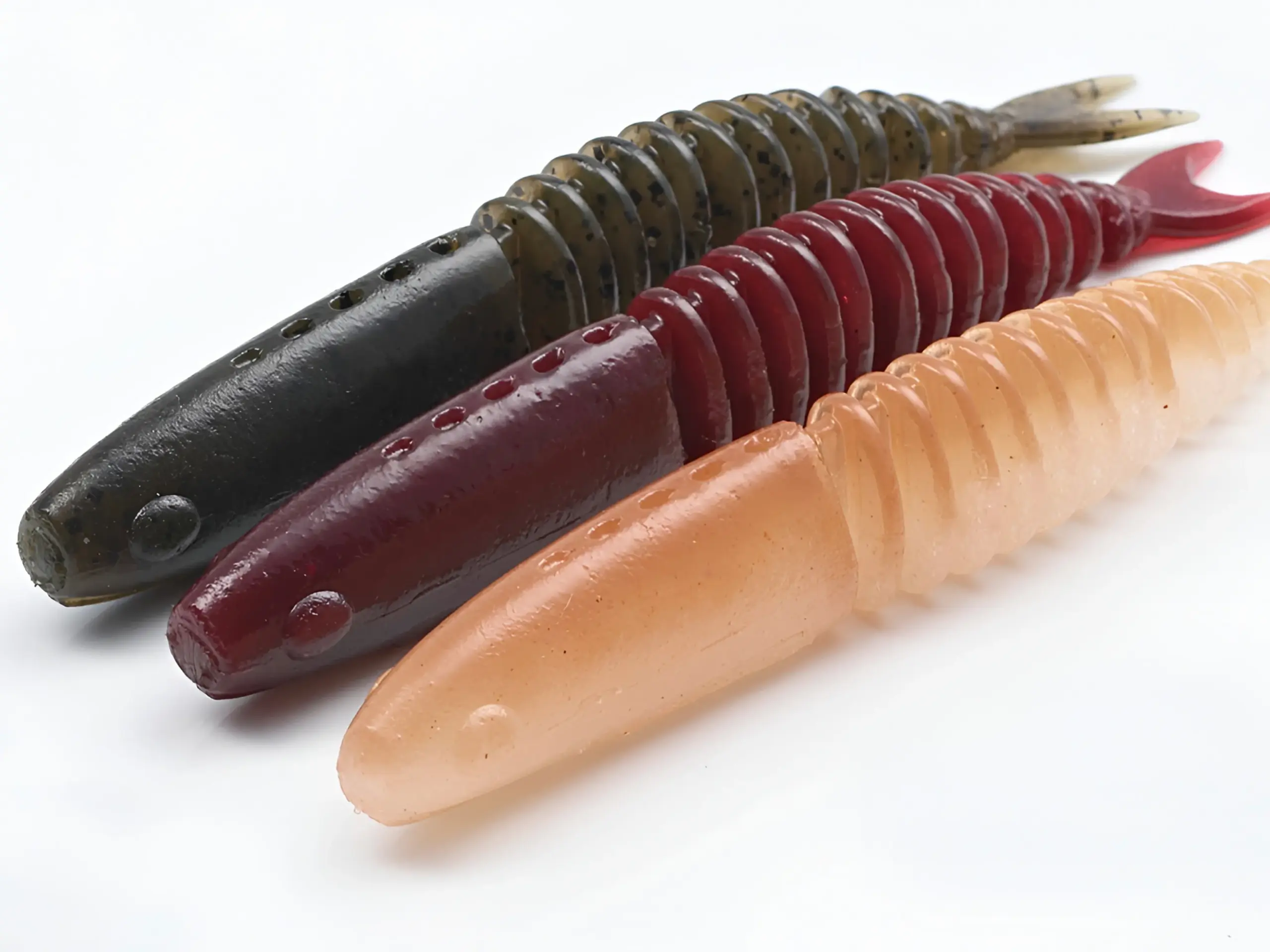 表層直下ではテールのうねる波動と“引き波”で魚を寄せ、中層では水中のテールアクションと波動でバイトを誘発する万能シャッドテールワーム。