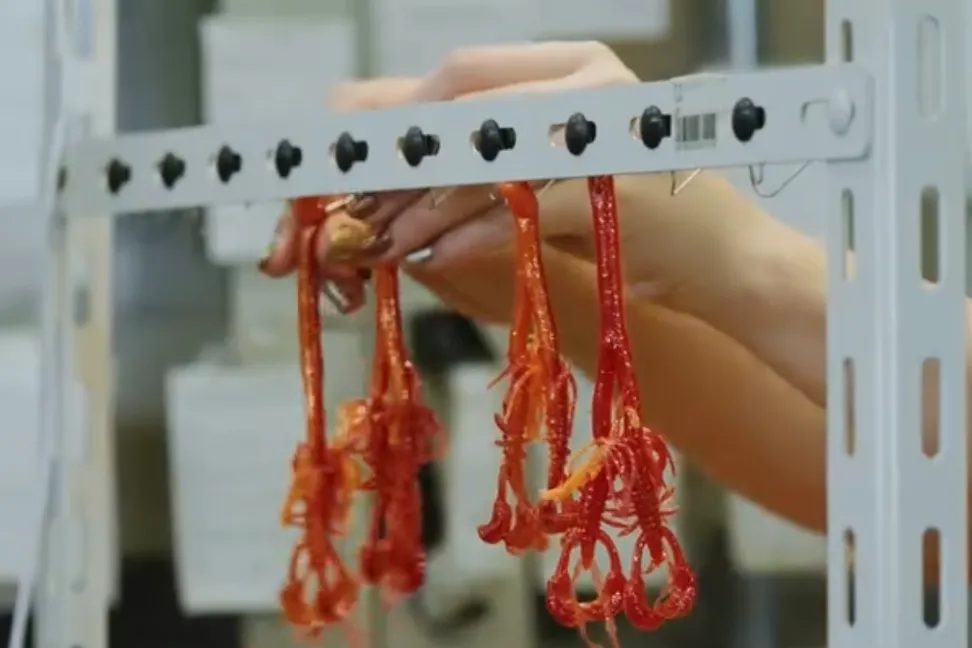 試作品の大半は日の目を見ることなくボツとなりますが、芽の出そうな試作品にはさらなる改良が加えられていきます。長さや太さの調整はもちろん、試作金型を新たに作り直すことも珍しくありません。デザインに合ったマテリアル硬度や塩含有量の調整を経て、ようやくフィールドテストへ進むことができます。フィールドテストでもさらに厳しい絞り込みが行われ、実釣で見えた課題を踏まえた一層の改良を重ね、徐々に完成品へと近づけていきます。フックセットのガイドラインやフッキングのためのスリットなど、使いやすさを追求した細かな機能も盛り込まれ、一つ一つがルアー能力向上のための欠かせないデザインの一部となります。